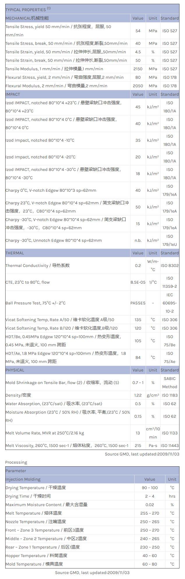 肇庆XENOY PC/PBT/PET EXXY0226物性表