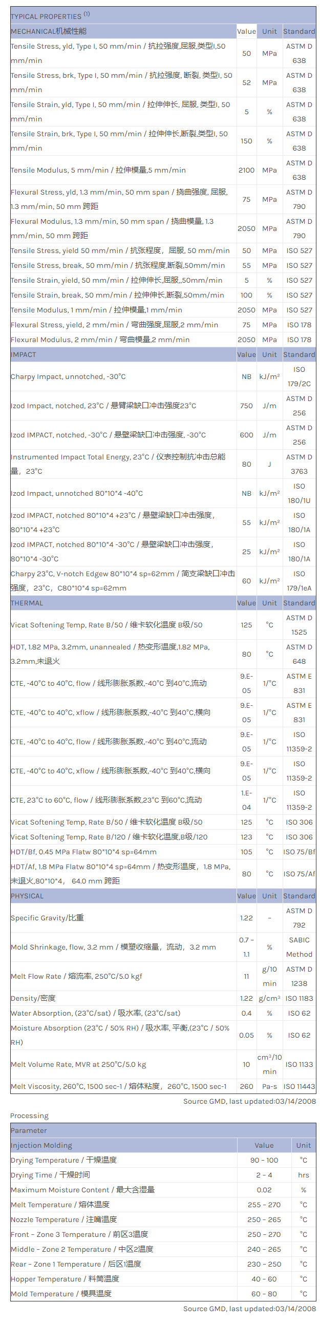 应用范围:产品描述XENOY PC/PBT/PET X5600HP物性表Xenoy* X5600HP Resin is a PBT/PC blend with good impact strength and chemical resistance for food contact compliant applications.相关色号:HX5600HP-5H8D010