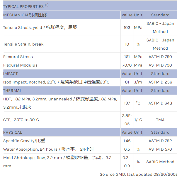 应用范围:产品描述NORYL GTX CRN720V物性表GF20% FR-GTX, Restricted to sell for new customers