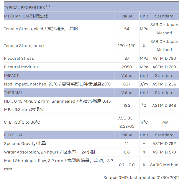 应用范围:产品描述NORYL GTX GTX600物性表Pa6 based unfilled GTX
