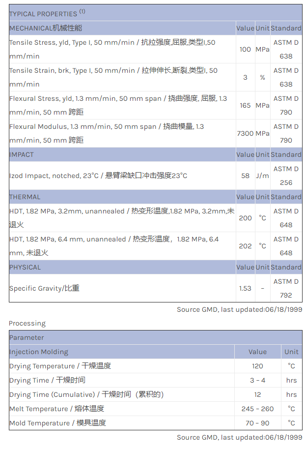应用范围:产品描述Valox PBT 6580物性表30% glass filled polyester.
