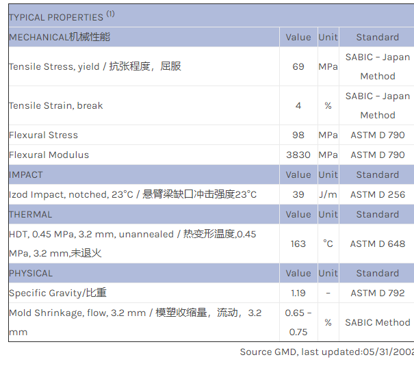 应用范围:产品描述NORYL GTX 115EM7S物性表