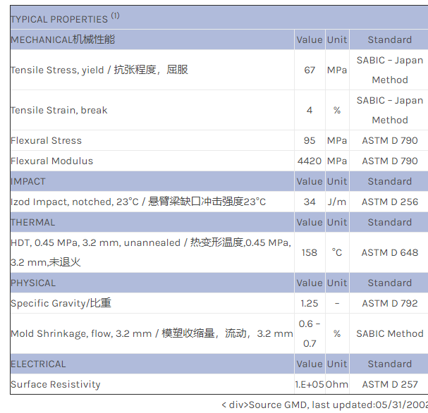 应用范围:产品描述NORYL GTX 121EM13S物性表