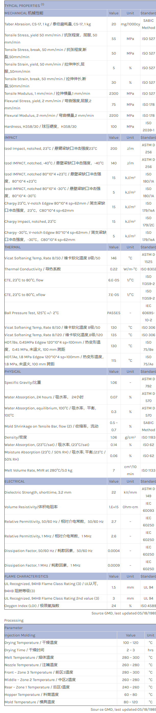 应用范围:产品描述NORYL GTX 731A物性表