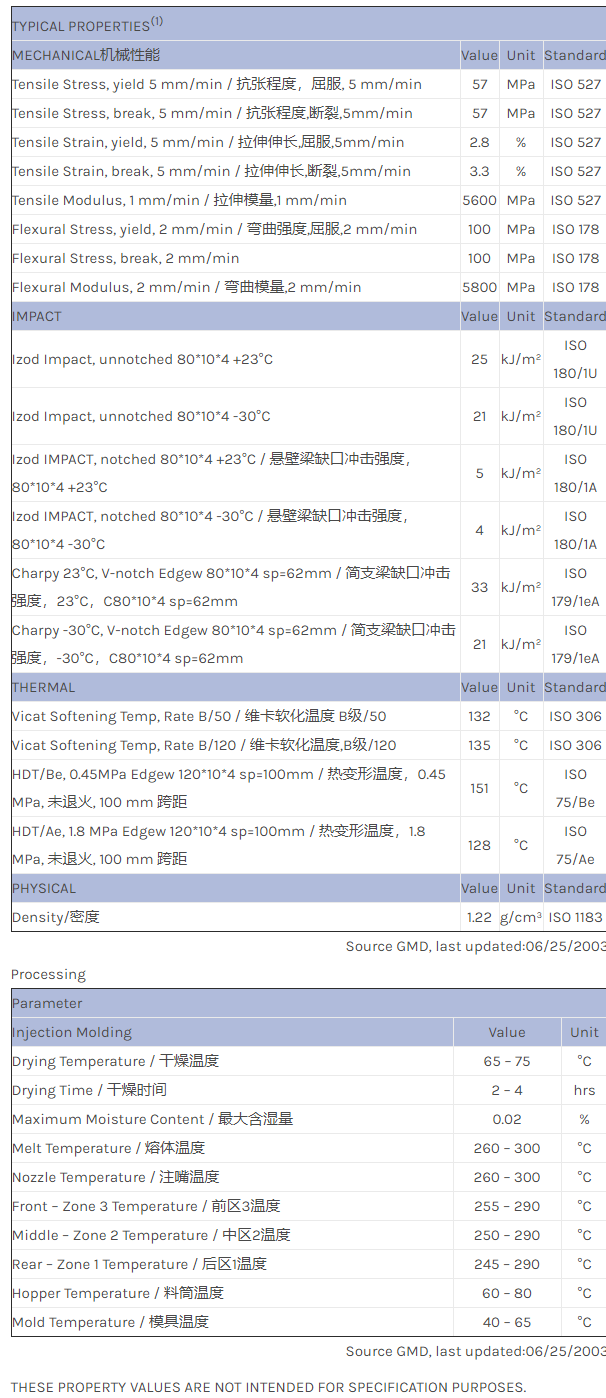 应用范围:产品描述Noryl PPX EXNP0012物性表Will be commercialized as PPX615 PRELIMINARY DATA. 15% glass reinforced PPE+PP. High strength.
