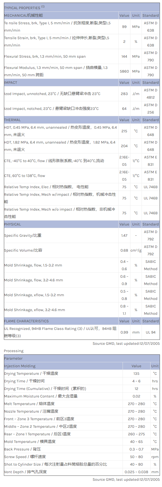 应用范围:产品描述Valox PBT 9215Z物性表15% Glass filled PET polyester; higher heat capabilities. Easy flow.