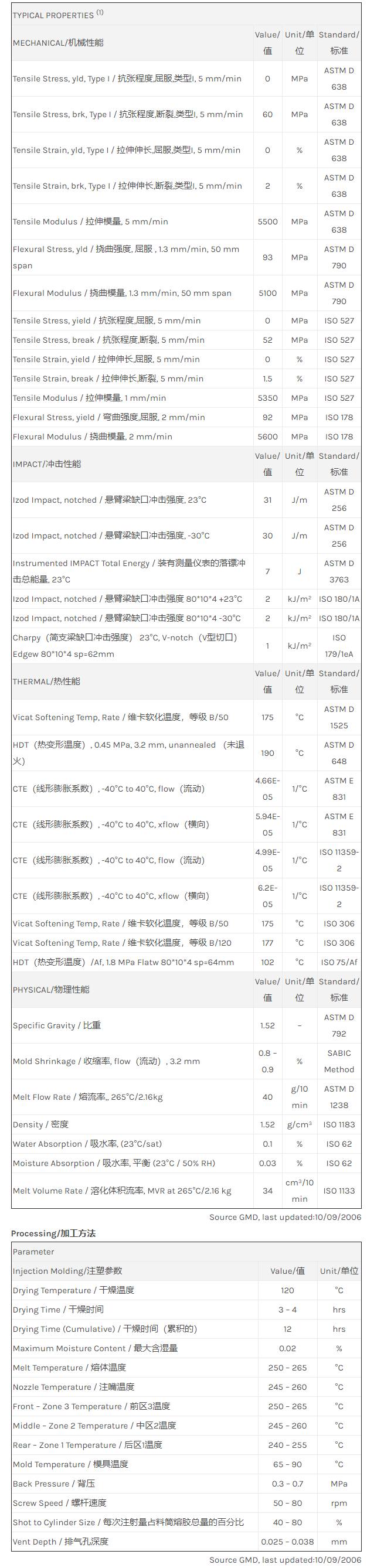 “Valox EH7025AG resin是一种聚对苯二甲酸丁二酯+PET(PBT+PET)材料,含有的填充物为矿物填料,加工方式为:注射成型。