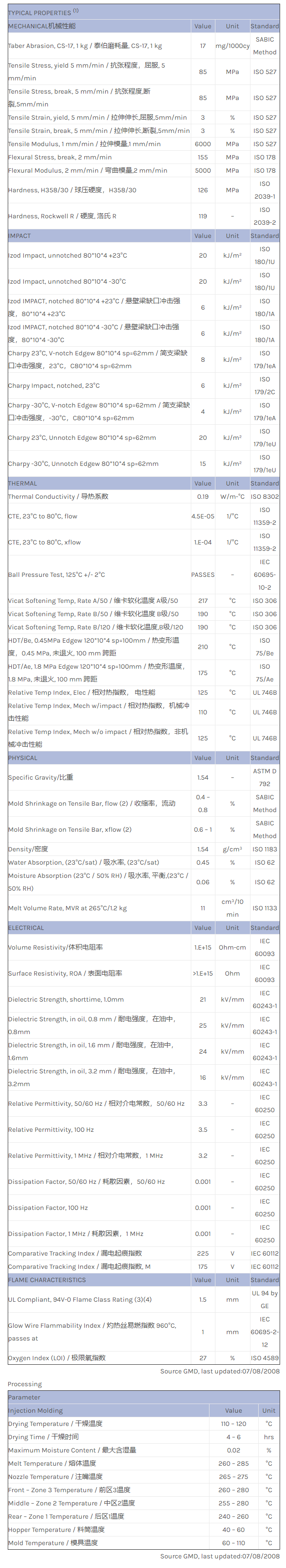 应用范围:产品描述Valox PBT EXVX1334物性表VALOX EXVX1334 is 16% glass reinforced PBT+PET blend with improved surface appearance, UV stabilised