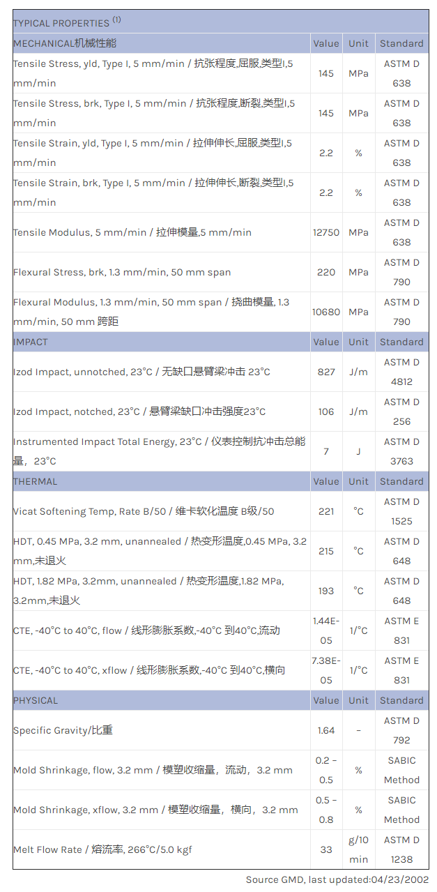 应用范围:产品描述Valox PBT V4280物性表40% GR PBT+PET. High stiffness. Application include office furniture.
