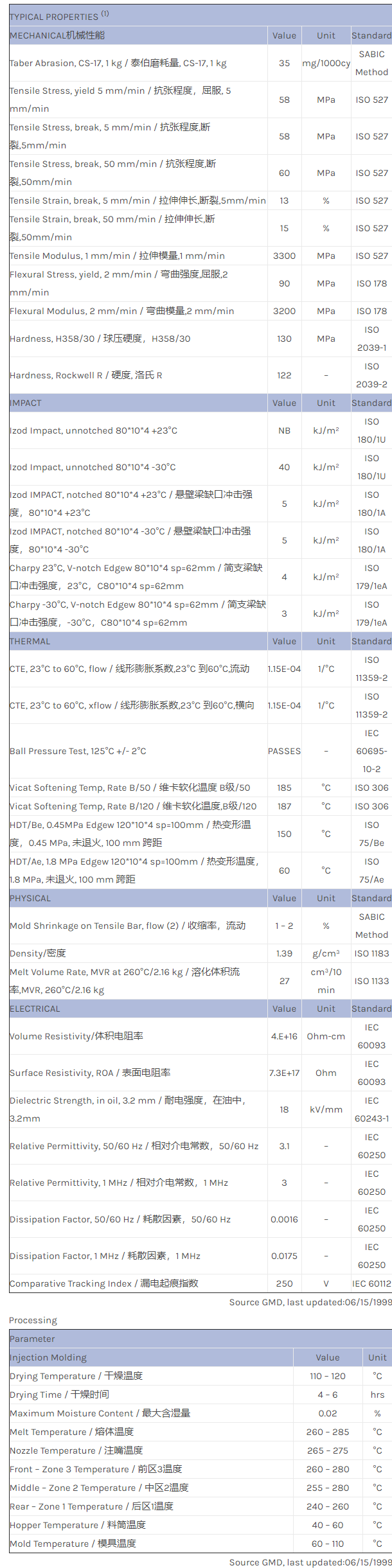 应用范围:产品描述Valox PBT VX7024物性表VALOX VX7024 is a 12% mineral filled PBT injection moulding resin with excellent MECHANICAL机械性能 properties.