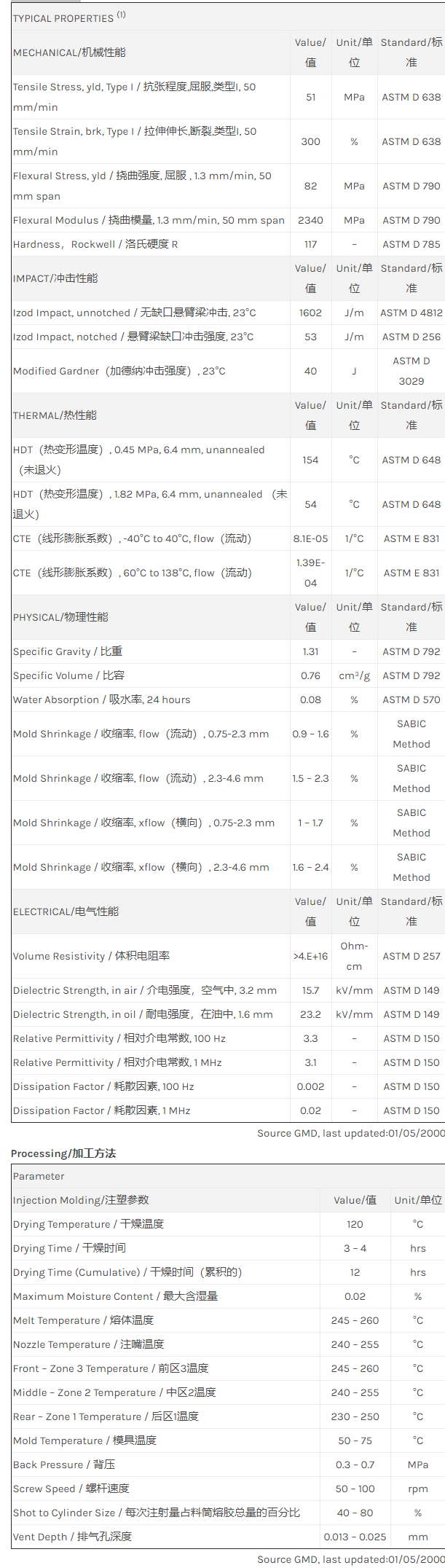 Valox PBT 311物性表