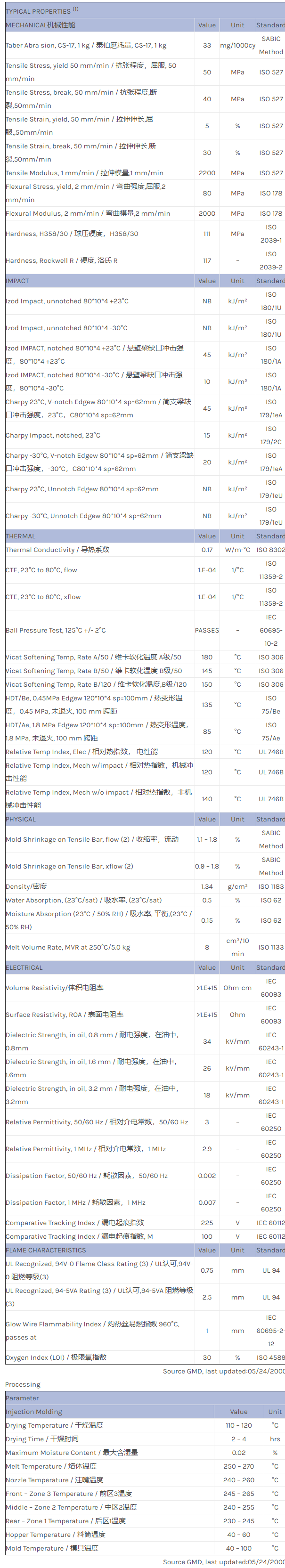 应用范围:产品描述Valox PBT 357XP物性表VALOX 357XP is an impact modified, UL94 V-0 rated polyester blend, used in applications like bobbins, switches and enclosures. This grade is a 357X with reduced plate-out.