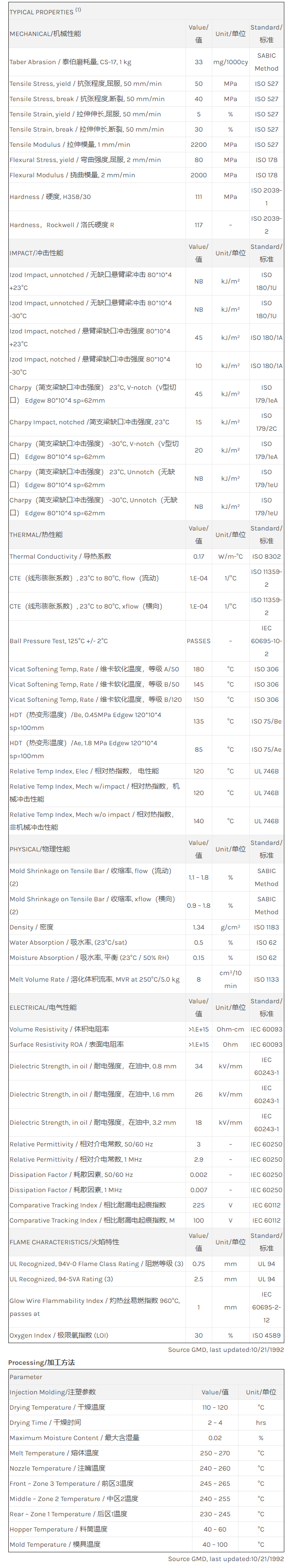 应用范围: 产品描述 Valox PBT 357X物性表 相关颜色色号:357X-1001、357X-74118、357X-7001 VALOX 357X is an impact modified, flame retarted PBT+PC blend. Applications like bobbins, switches and enclosures. Property/特性