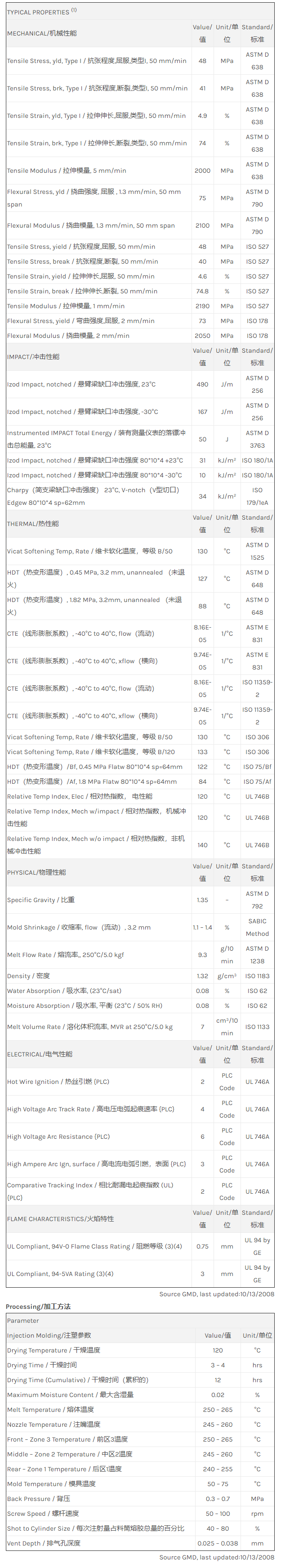 应用范围: 产品描述 Valox PBT IQ357M物性表 “Valox IQ357M resin是一种聚碳酸酯+聚丁烯对苯二甲酸酯(PC+PBT)材料,加工方式为:注射成型。 Valox IQ357M resin的主要特性有: 阻燃/额定火焰 环保/绿色 冲击改性 脱模剂 ” Valox* Resin iQ357M: Environmentally responsible, low