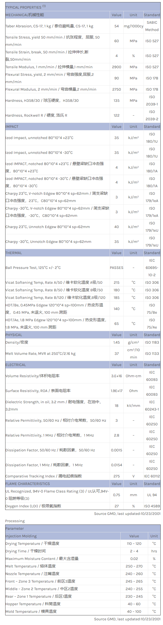 应用范围:产品描述Valox PBT VX3603A物性表VALOX VX3603A is an unreinforced, flame retardant PBT injection moulding resin with an excellent flow and high CTI.