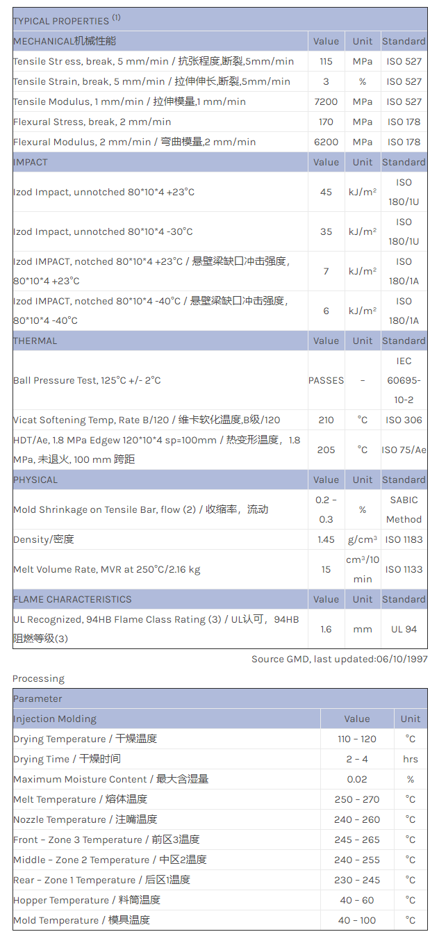 应用范围:产品描述Valox PBT VX4024物性表20% glass filled PBT.