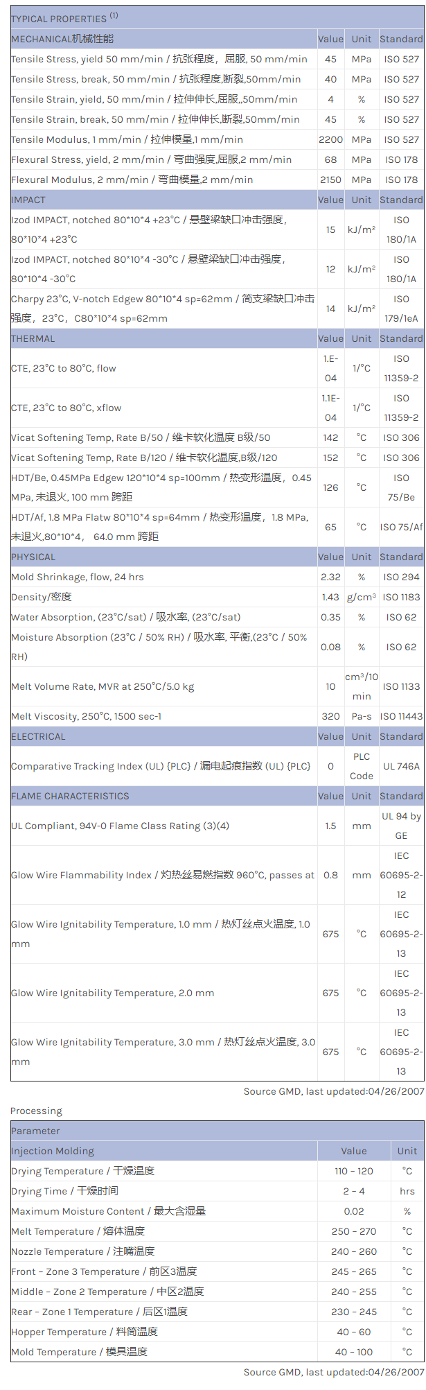 应用范围:产品描述Valox PBT V3501物性表Unfilled Flame retardant PBT with excellent Modulus-Impact-Flow-Electrical property balance for telecom connectors
