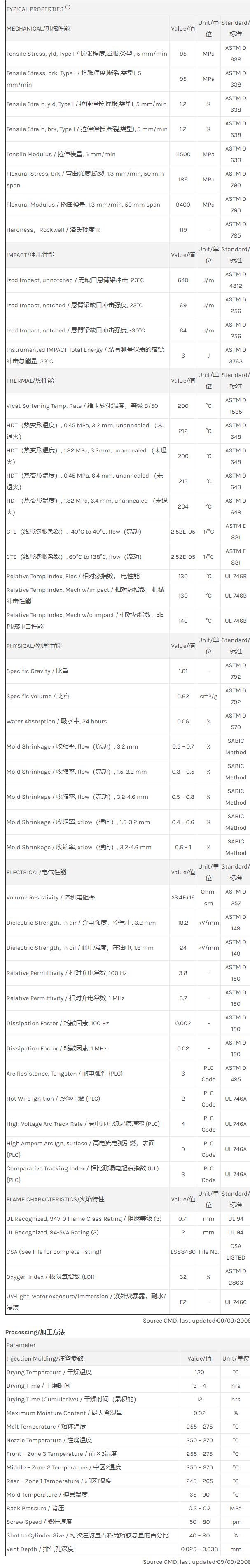 30% GR, UL94V-0/5V 额定。许多用途:切边机、食物搅拌机马达定子与换向器、电风扇、连接器、线轴、开关等。