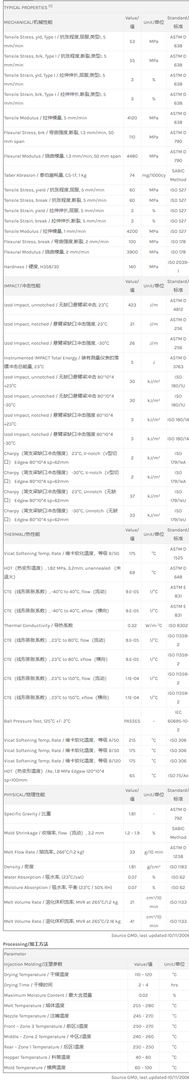 “Valox 7062HP resin是一种聚丁烯对苯二甲酸酯(PBT)材料,含有的填充物为38%矿物填料,加工方式为:注射成型。