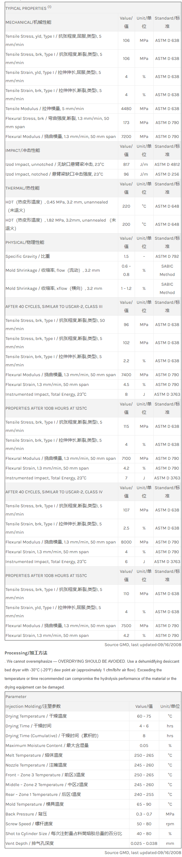 应用范围: 产品描述 Valox PBT K4560物性表 30%玻纤增强PBT。 冲击改良、高流动,水解稳定。US 汽车测试。 相关颜色色号:K4560-1001、K4560-6187、K4560-BK1066 30% glass reinforced PBT. Impact modified, high flow, hydrolytically stable. Property/特性