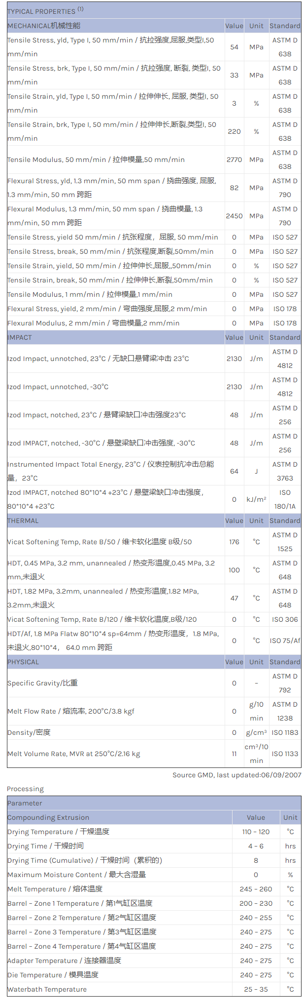应用范围:产品描述Valox PBT IQ315物性表Valox IQ315 resin是一种聚丁烯对苯二甲酸酯(PBT)产品,可以通过化合物挤出进行加工。特性包括:环保/绿色高分子量
