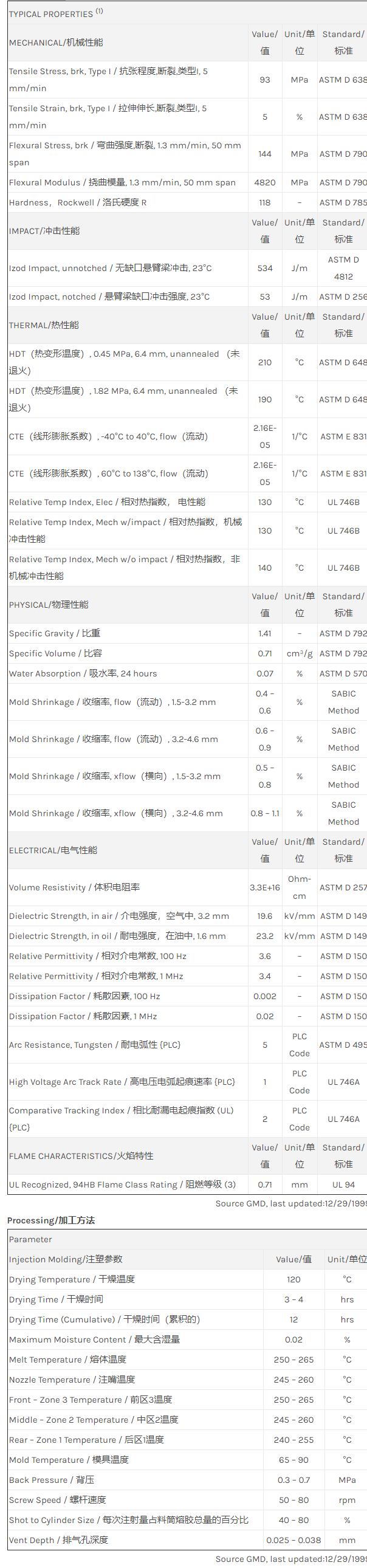 应用范围: 产品描述 Valox PBT DR51物性表 15% 玻纤增强聚酯。优异的机械、热、电气性能。非阻燃。聚光灯、器具外壳、把手、连接器。 相关颜色色号:DR51-1001、DR51-7001、DR51-BK1066、DR51-70000、DR51-GY4E287、DR51-GY4A478、DR51-80725 15% GR polyester, excellent mechanical,