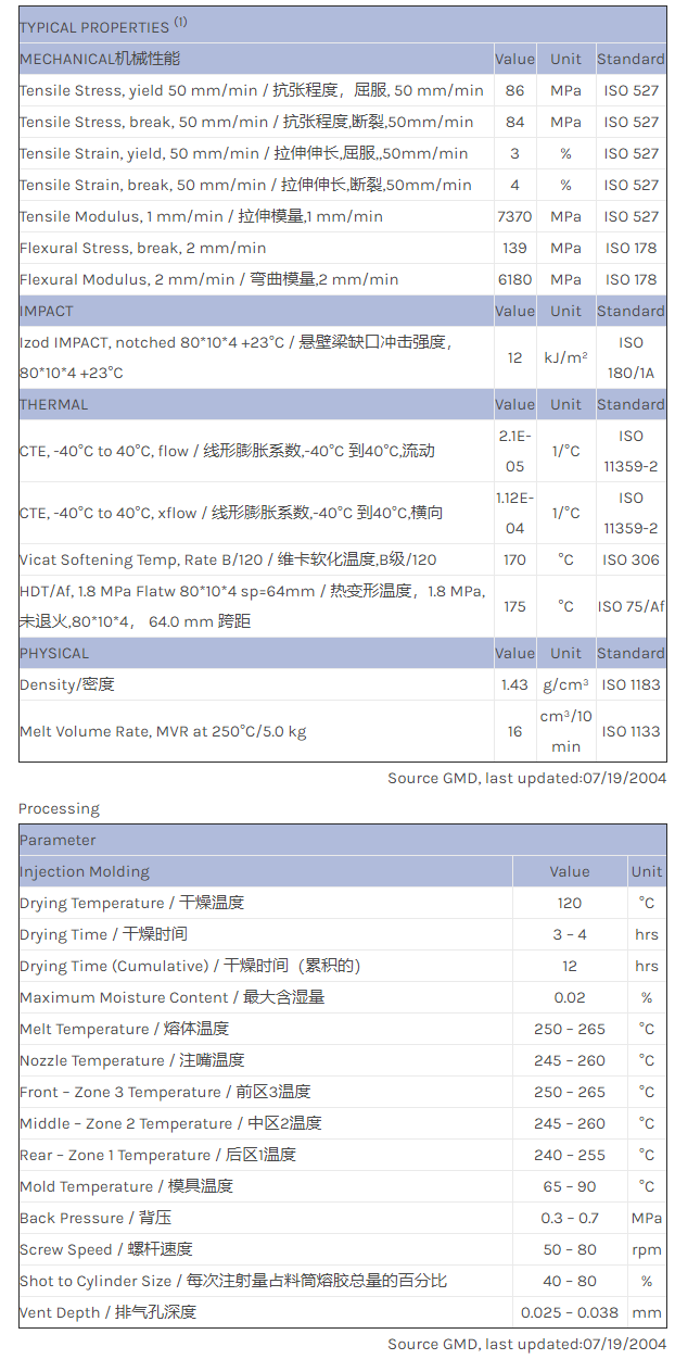 应用范围:产品描述Valox PBT EXVX1154物性表PBT, Glass, Impact Modified, for automotive coil plug ignition housing